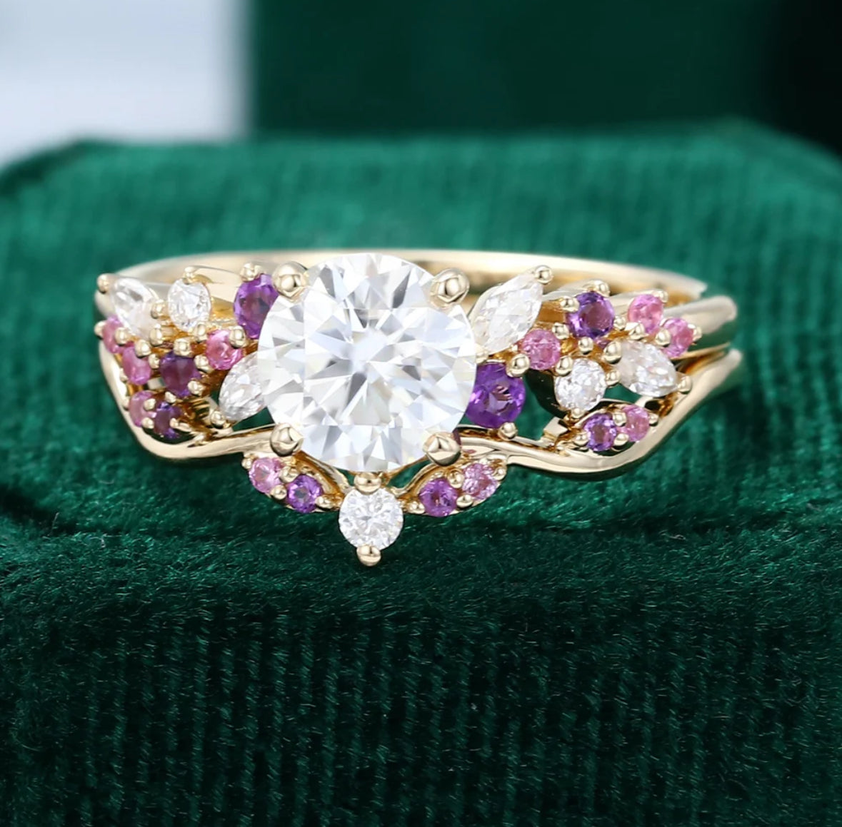 1.5 ct Heather Hues Engagement Ring Set Diamond Promise Ring Set 18k Gold For Her