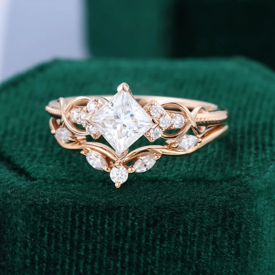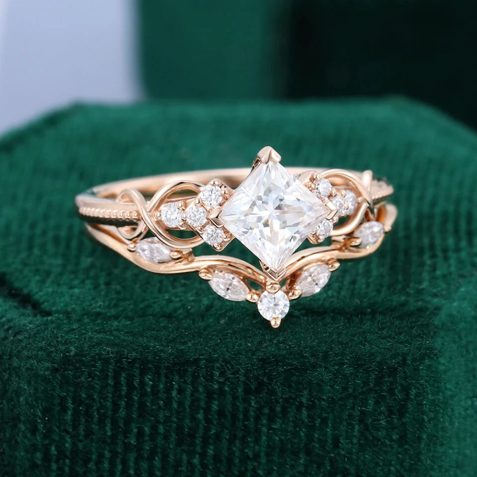 1.5 ct Princess Cut Diamond Wedding Ring Set Infinity Design Bridal Ring Set 18k Gold